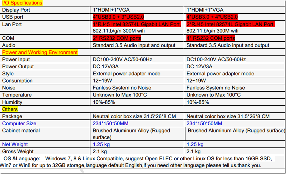 Now,let’s see the specification and find what differences between them,(different items have been marked red bottom in the below form)