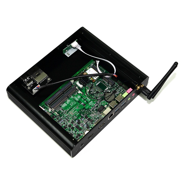 Back side:1 SD Card,1 USB2.0,1 SW.(many people use it in some area that nobody control the computer,so it need auto power on,don’t worried,this mini i7 computer Support calls on function automatically)