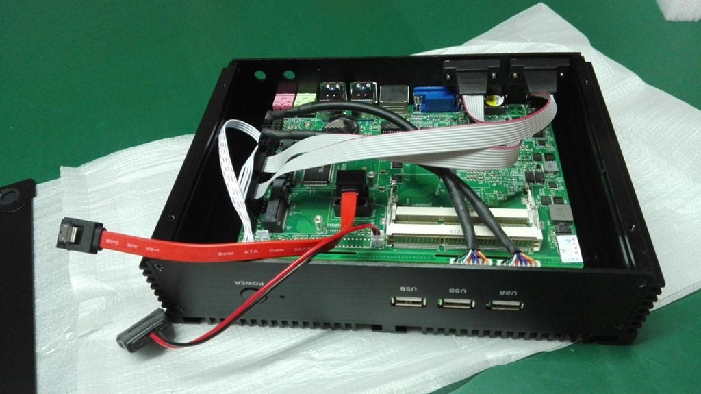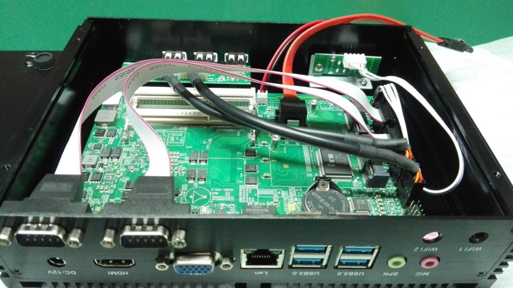 From the above picture we can know that this mini industrial computer hhave 2 COM ports,1 DC IN,1HDMI,1VGA,1LAN,4USB3.0,1SPK,1MIC,2 WiFi antennas ports.