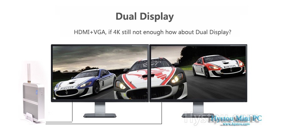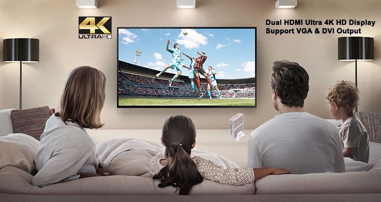 2nd,HDMI and VGA port,you don’t need to worried that your monitor do not have HDMI port or VGA port,with the two ports,almost all the monitor can be connect to this host,and we usually send one HDMI cable as free gift to you.some people will ask if this host support dual display?Connect two screen to one host?Yes! It can be embodied.One HDMI and one VGA port can be used in the same time,that’s what we said”dual display”.