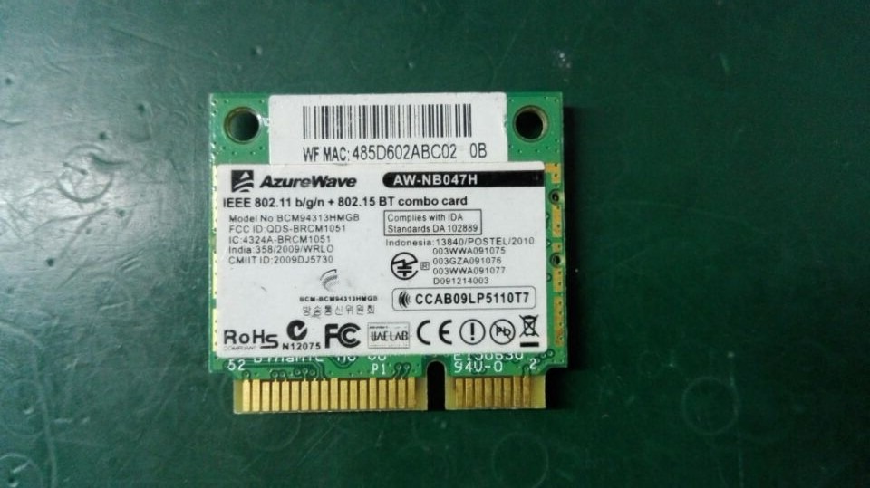 or you can choose this one, name: Broadcom,model:BCM43224HMB (300M dual-band WiFi without Bluetooth )
