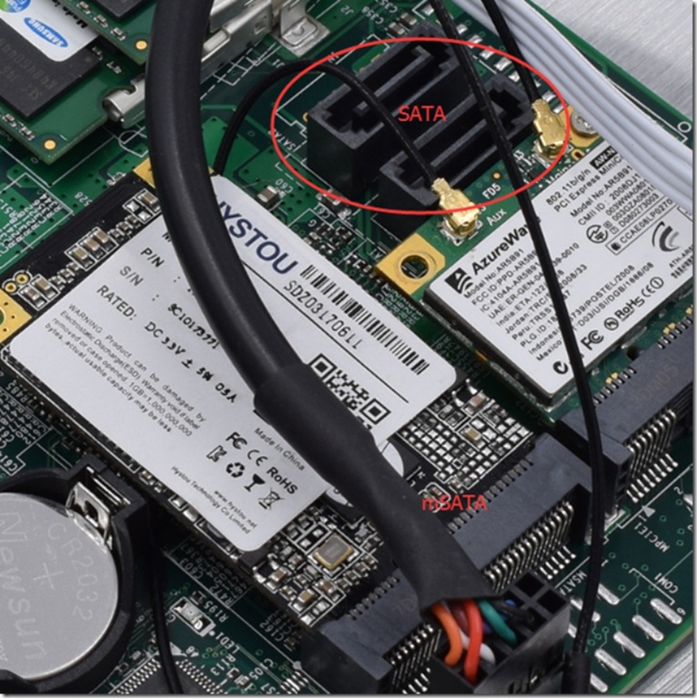 Currently HYSTOU Mini PC all come with this mSATA slot and also SATA port shows above, as many users would like to use SSD only for system and programs, they prefer HDD for file saving, so to give those users freely choise, all SSD HYSTOU supply is mSATA style, leave the SATA port emplty for users personaly DIY use, add SATA SSD or HDD, just as you like.
