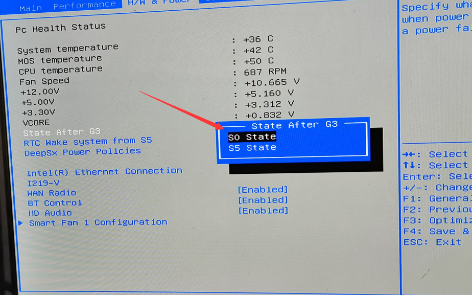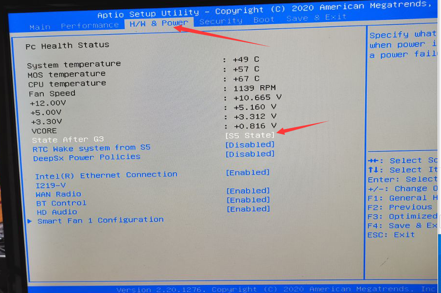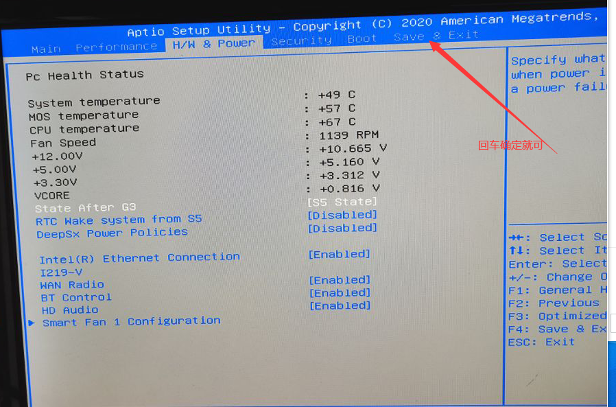 4. Click the “↑”“→”to save this change, clieck “Enter”, all finished, restart you computer, then the auto-power-on function will work.