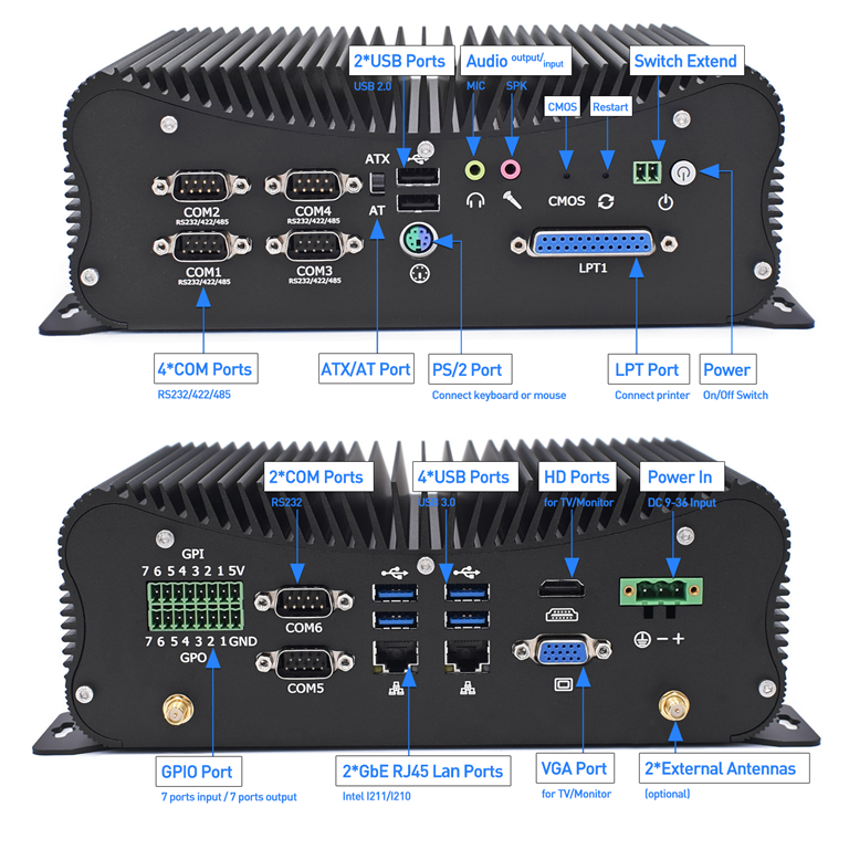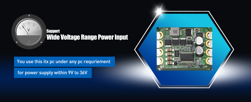 The adapter input voltage from 100V AC ~250V AC, and the main board support wide voltage from 9V DC ~ 36VDC.