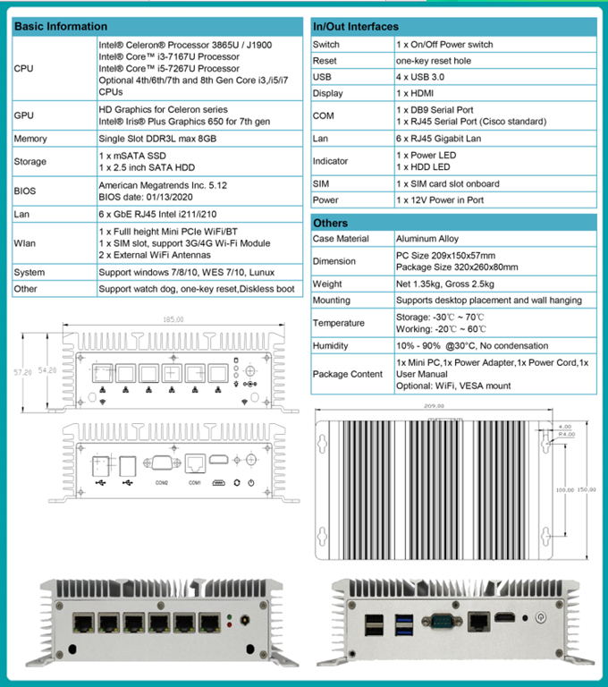 Here’s the images, we can see the 6LAN ports and 2 COM ports(1 DP 9Pin COM& 1RJ45 COM):